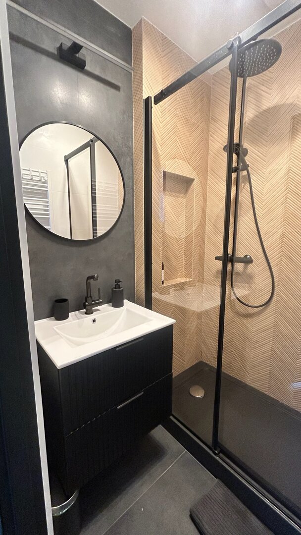 Dwie niezależne łazienki to gwarancja wygody i prywatności. Jedna z prysznicem, druga z toaletą i umywalką – obie w eleganckim, minimalistycznym stylu, z zestawem kosmetyków i świeżymi ręcznikami.